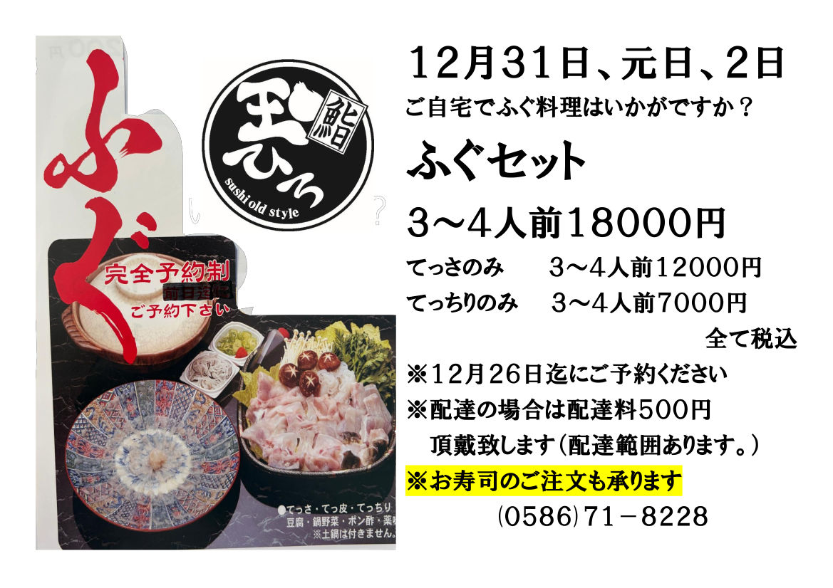 ふぐセット ご予約受付中!